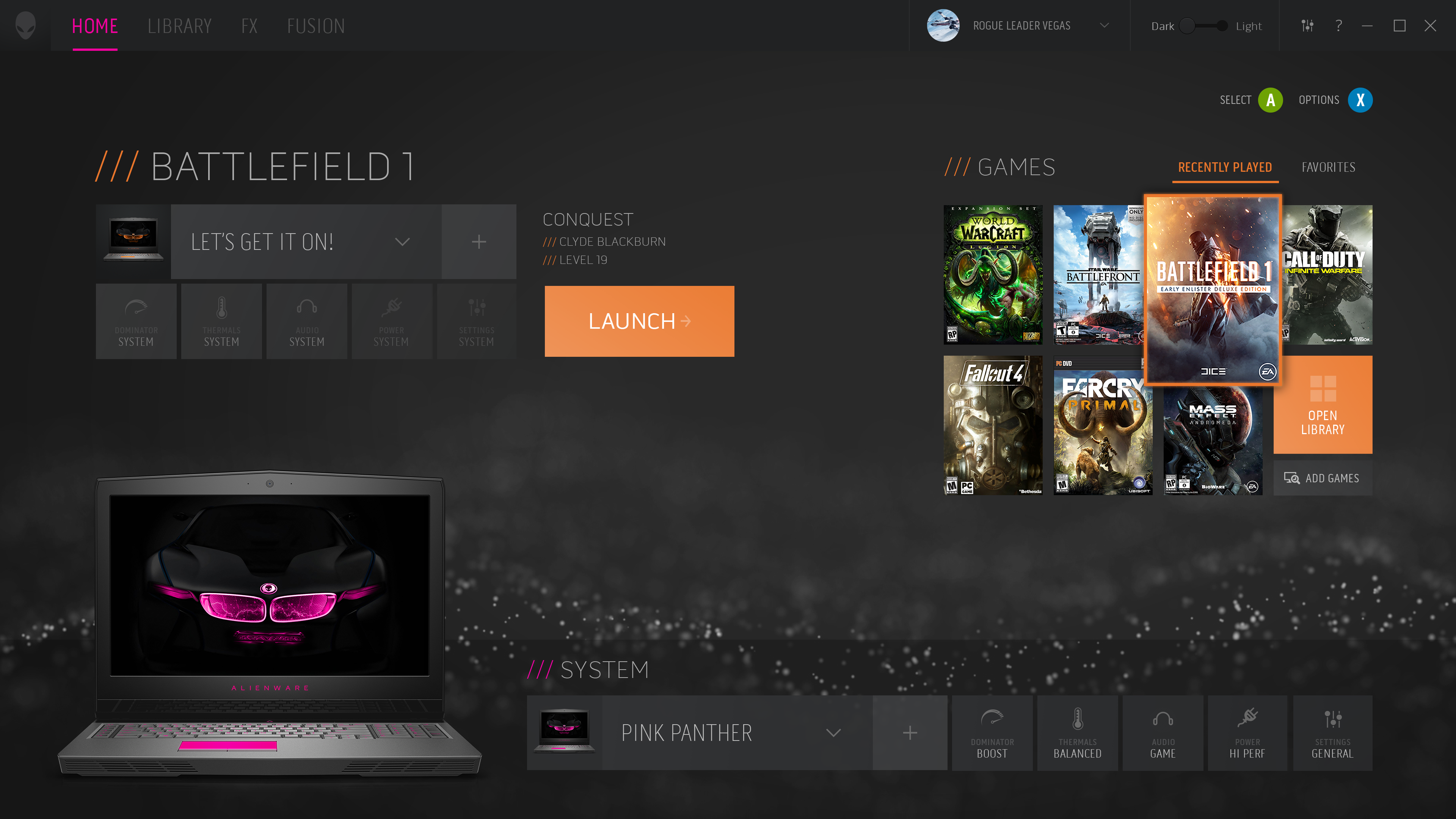 ALIENWARE COMMAND CENTER DASHBOARD - LIGHT