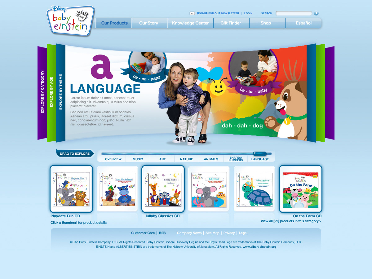 At Real Branding, I was tasked with creating a new interactive website for Baby Einstein, looking to capture the feeling of fun creativity the brand is well known for.
