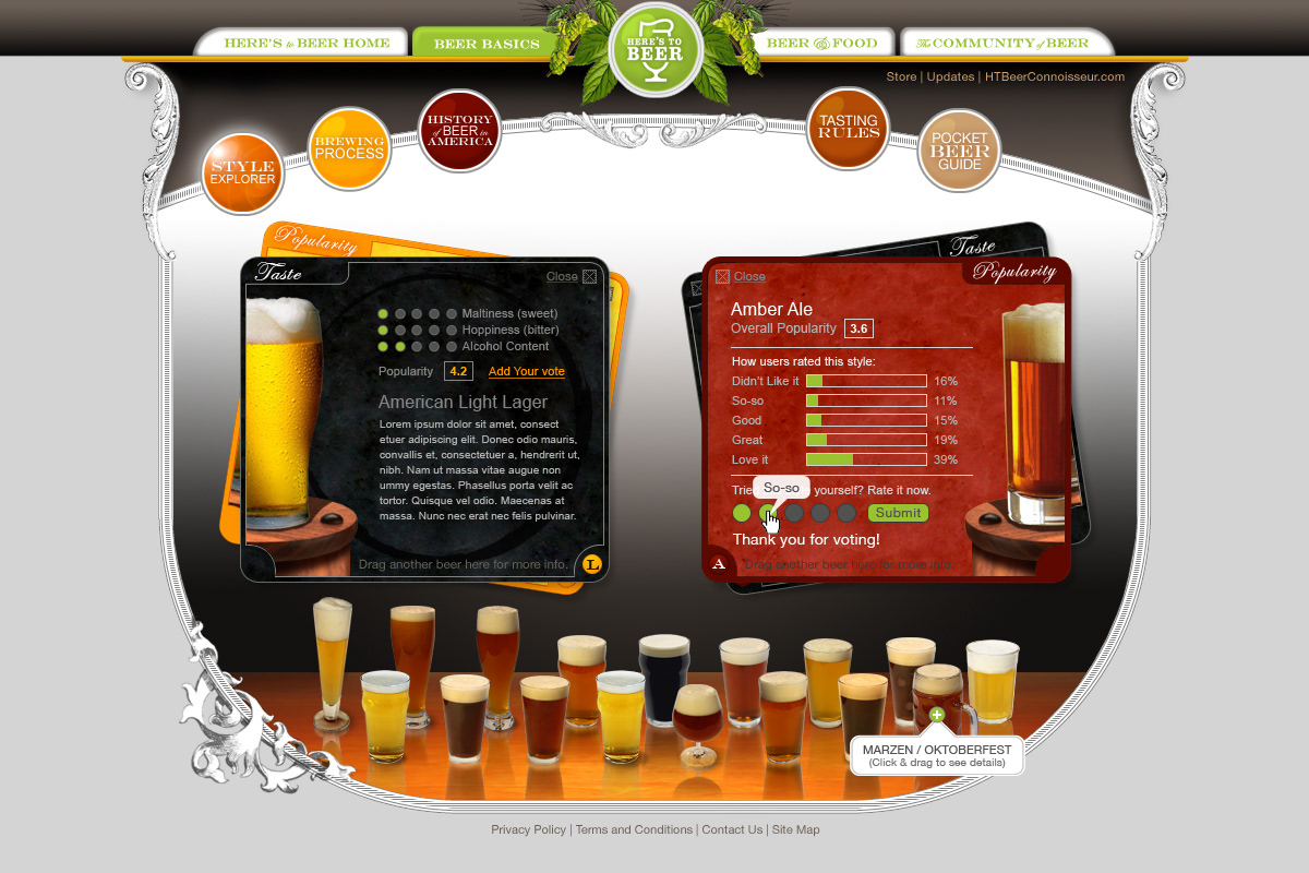 The premise of the site was to elevate beer to a connoisseur level, giving users the ability to explore all types of beer, see how they stack up against each other, and even find the right pairings for food.