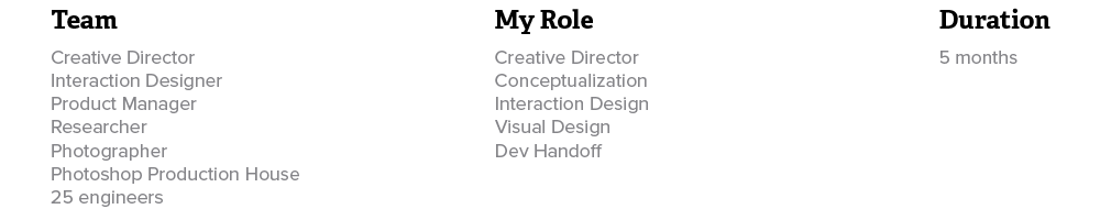 OLED display: To ideally give any user who picks it up an "Ooooooooohh" moment as well as a feeling of "depth" throughout their experience, I came up with the concept of creating parallax images for the home screen. Instead of traditional parallax that tended to be illustrative or cartoony though, we would capture extremely high-res photos of a few beautiful locations and do some heavy lifting in Photoshop to break them into layers.