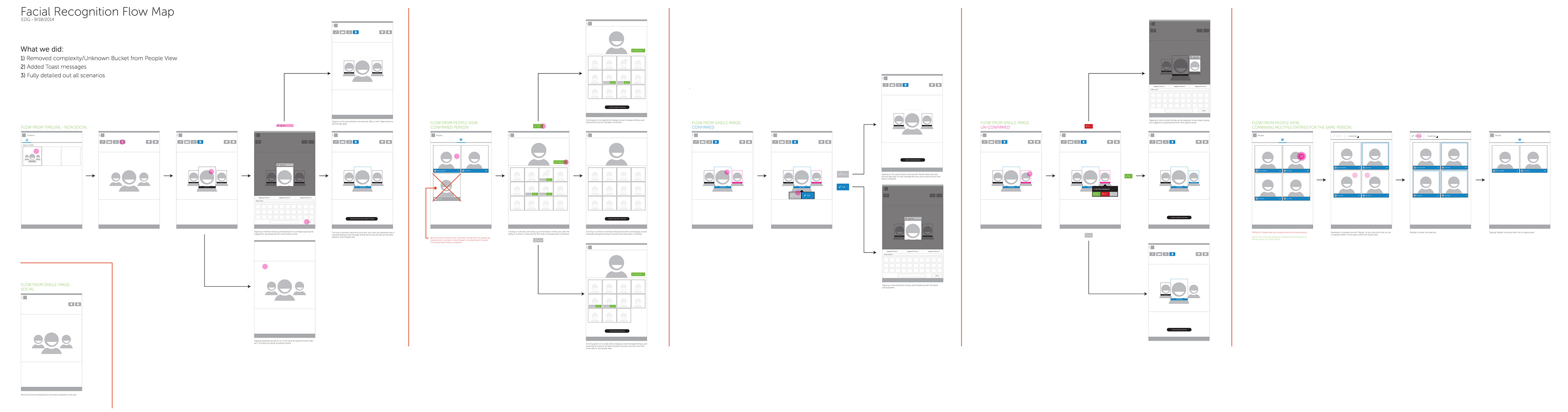 Due to complexity, some views required full flow mapping to ensure all edge cases were considered. Below is an example for the advanced facial recognition that was built into our gallery.